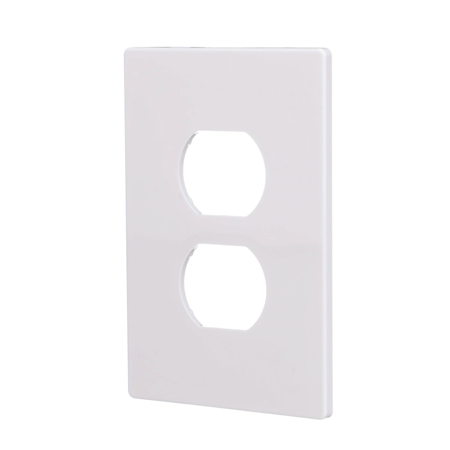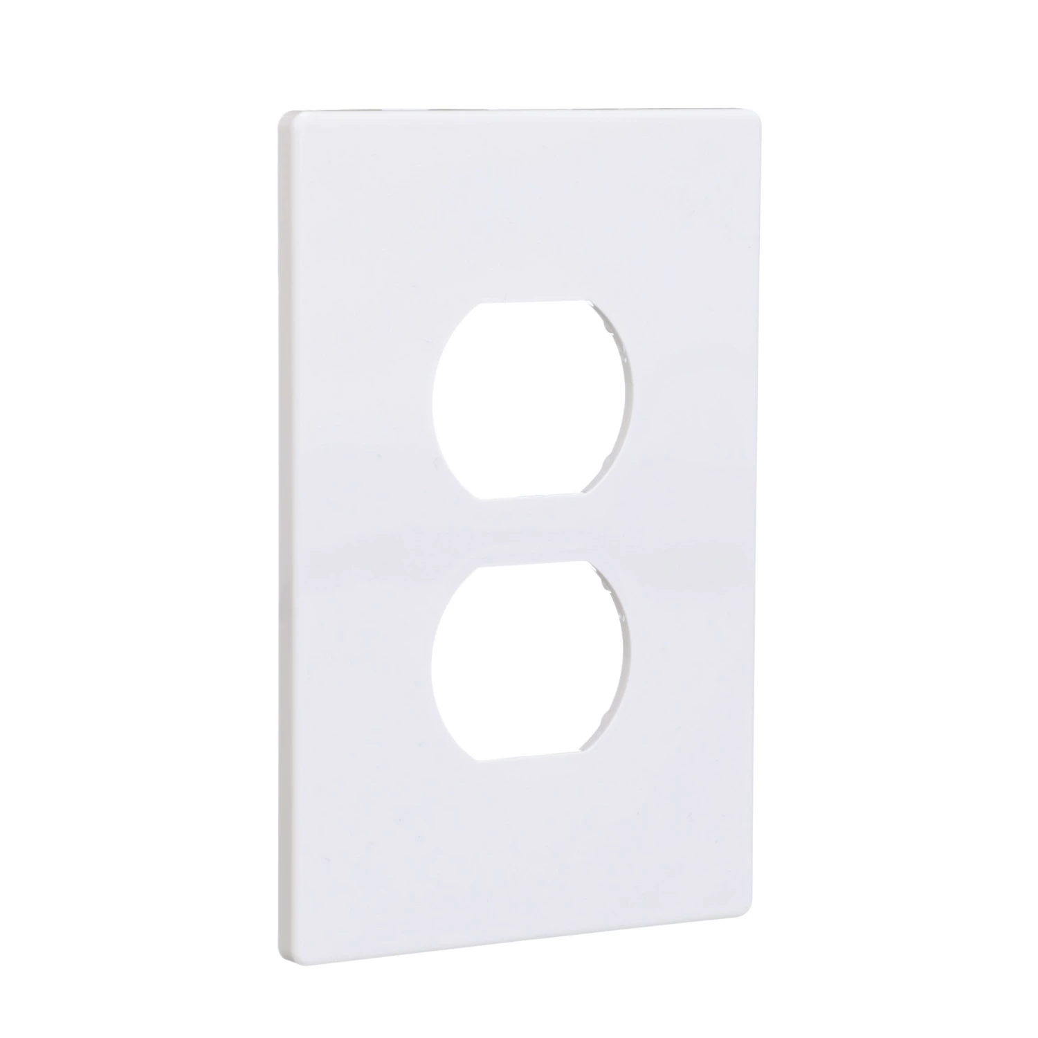 Eaton’s mid-size screw-less wall plates help provide a sleek, smooth and seamless look to your wiring devices. Rugged construction reduces installation cost due to less plate breakage and resists bowing to provide a smooth, flat installation. Exclusive time saving screw-catch feature holds mounting screws captive and simplifies installation. High gloss finish is soil resistant.