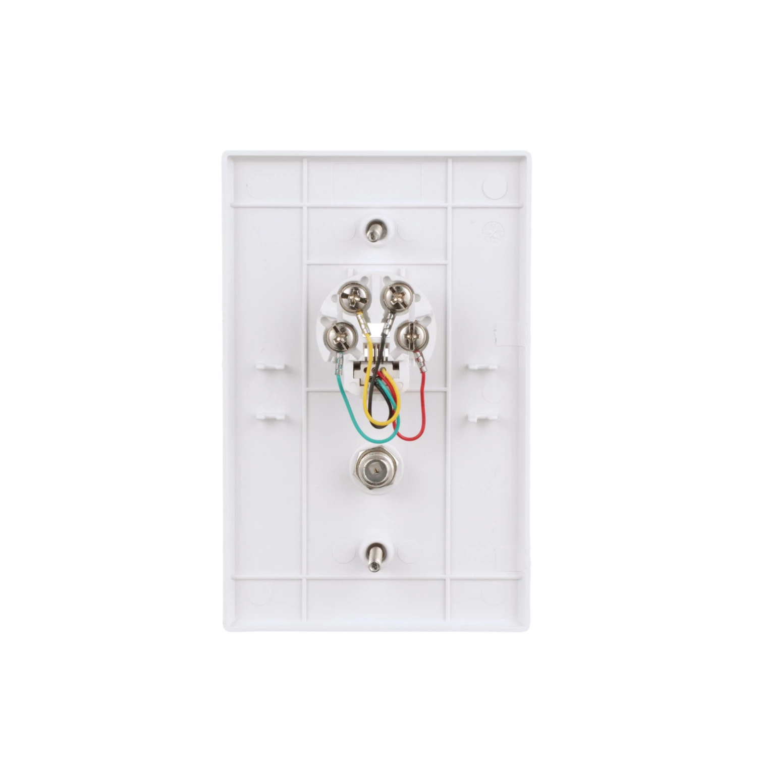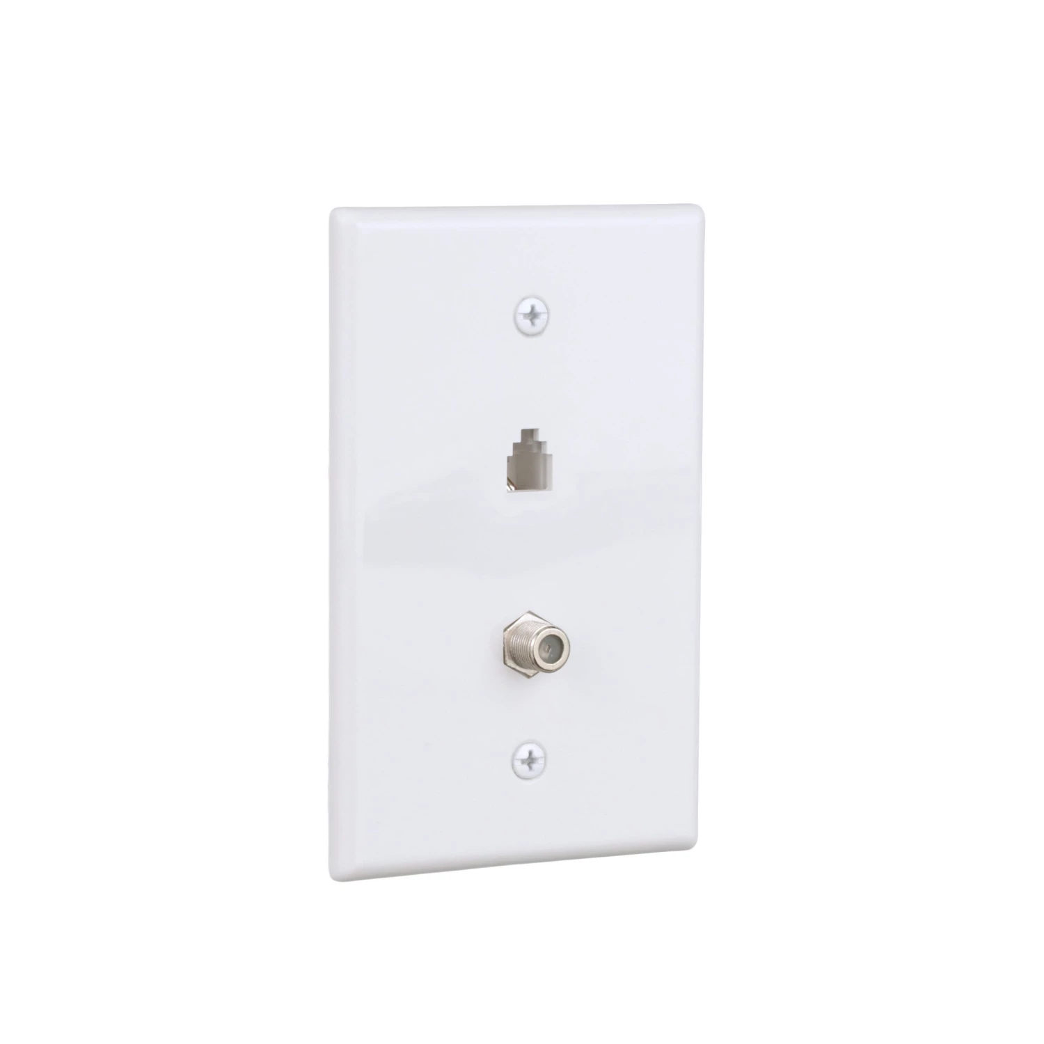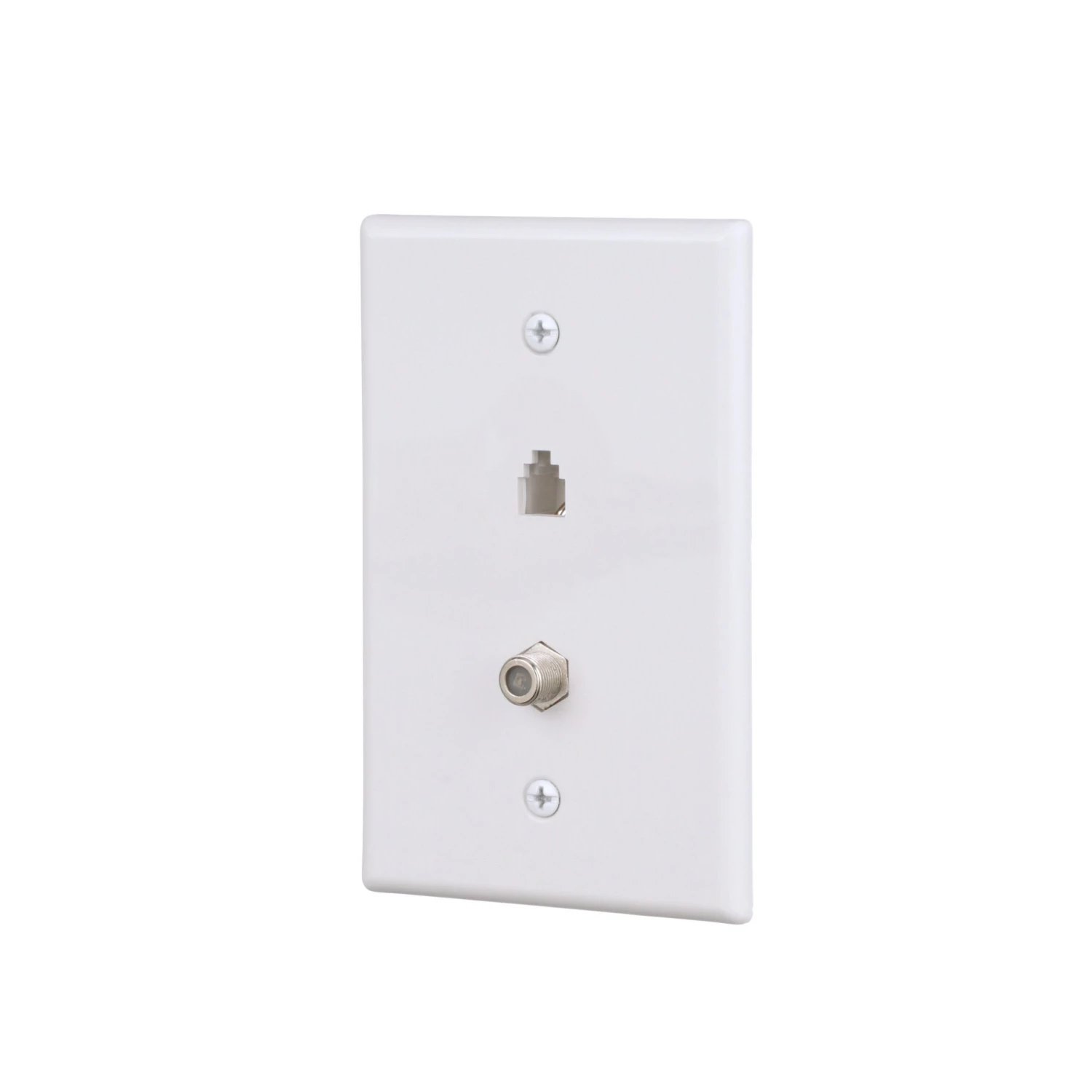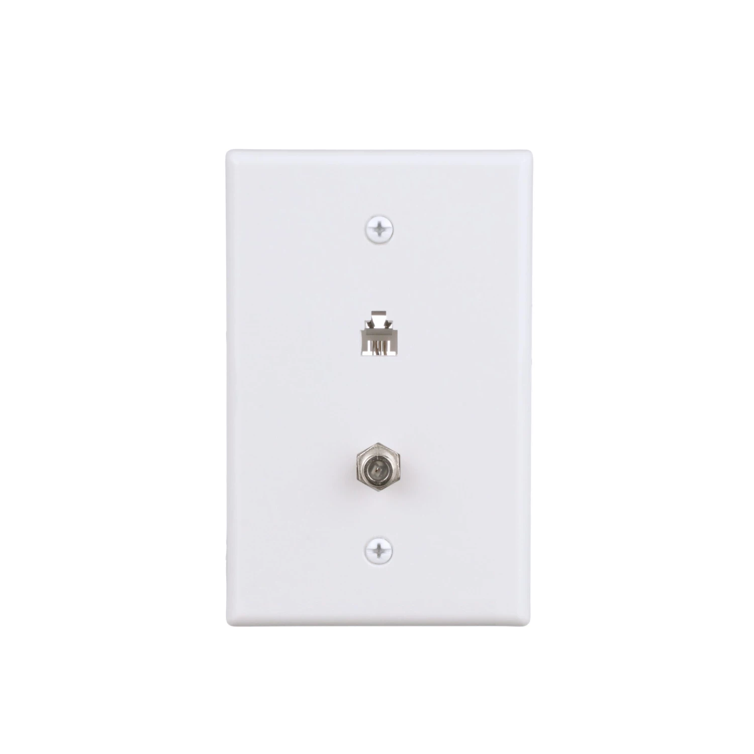 - Flush mount wall plate with telephone jack and coaxial jack