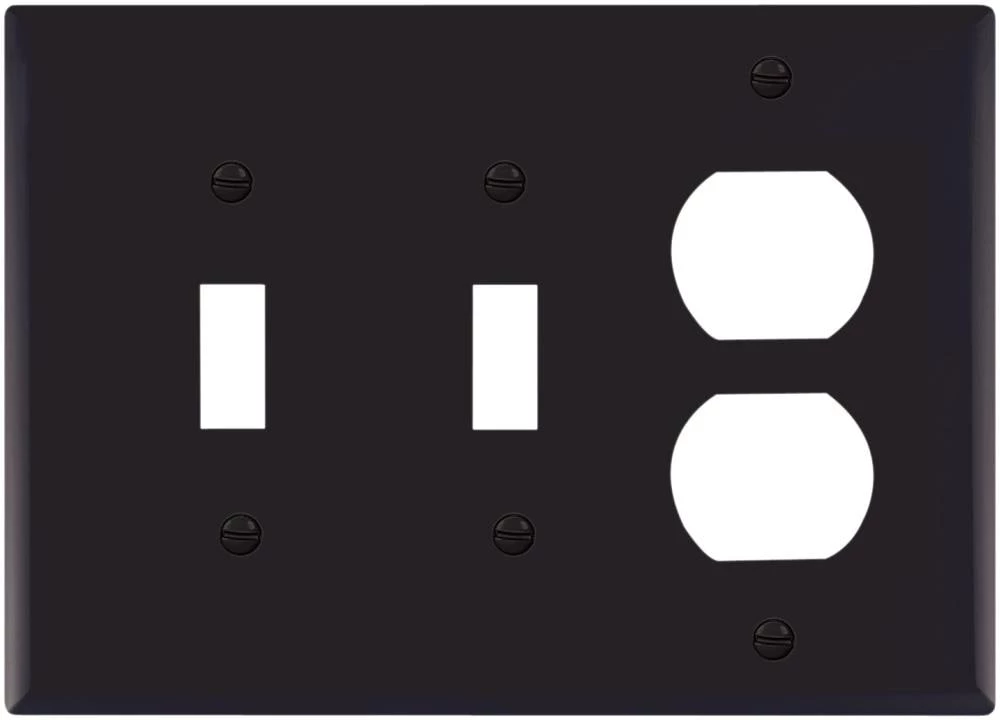 - 3-gang mid-size combination for 2-toggle switches and duplex outlet