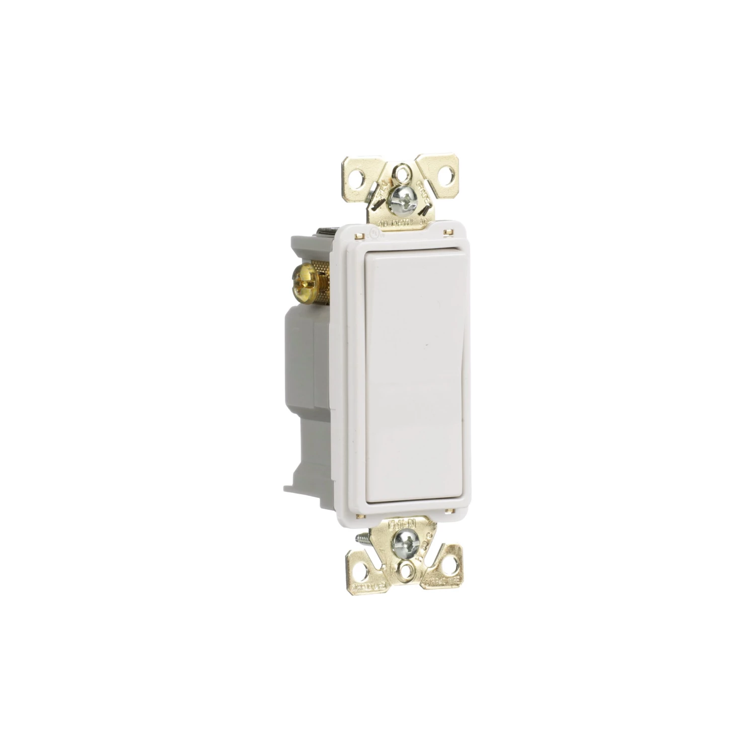 - White finish three-way decorator switch offers 20A, 120/277V capacity designed to provide superior quality, reliability, and performance in a variety of commercial and residential applications