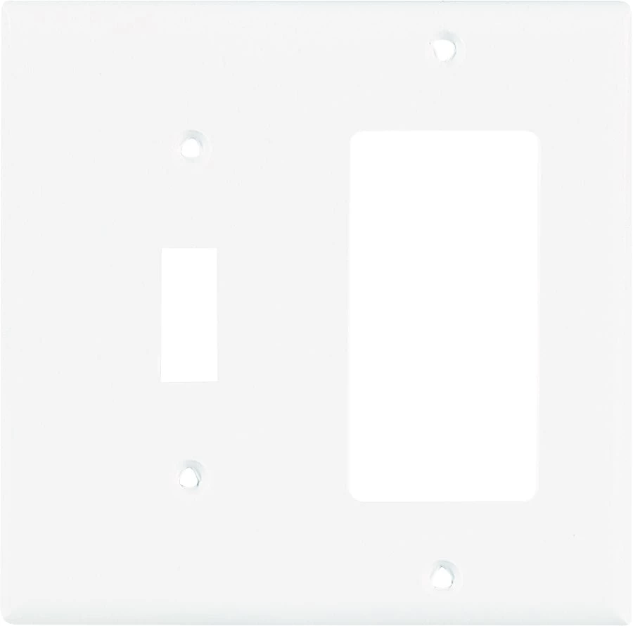 - This is a standard size nylon wall plate. It is white in color and is a 2-gang combination of 1 outlet/1 switch wall plate