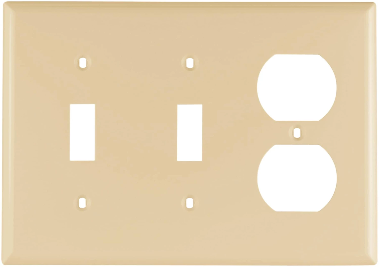 - 3-gang standard size combination for 2-toggle switches and duplex outlet