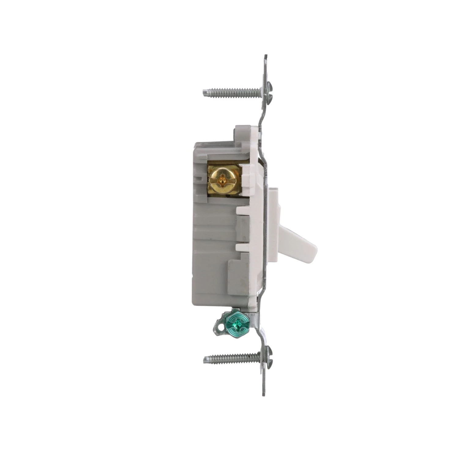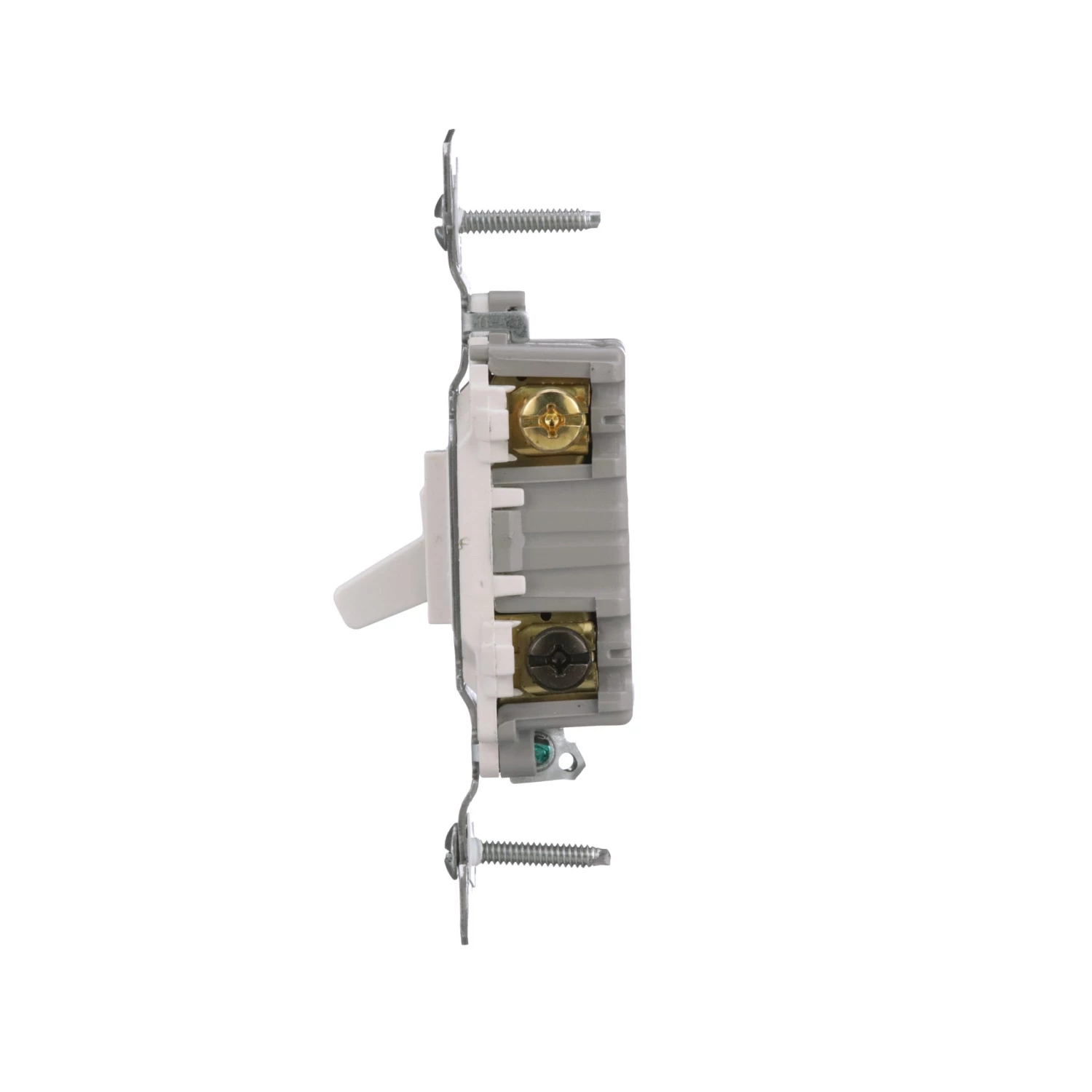 - White finish three way small toggle switch offers 15A, 120/277V capacity designed to provide superior quality, reliability, and performance in a variety of commercial and residential applications