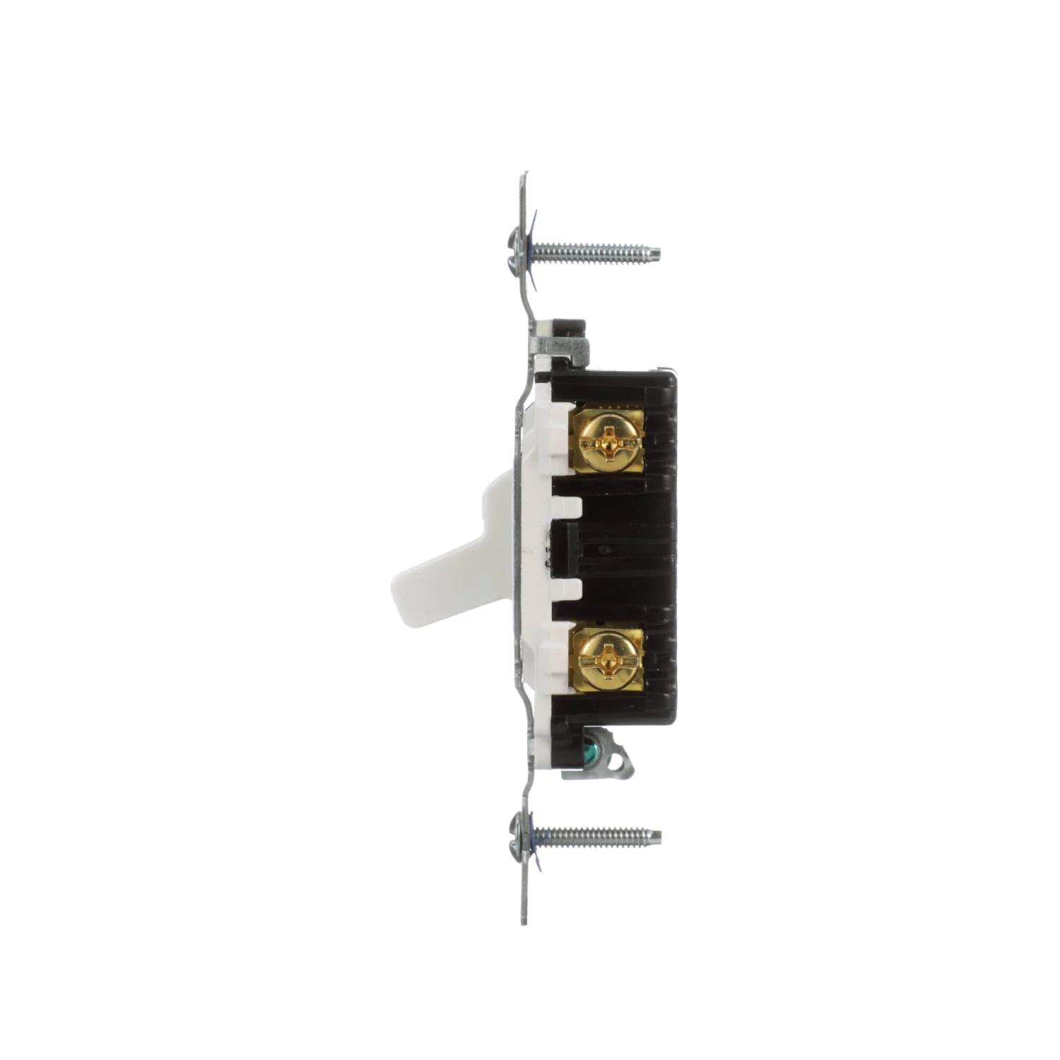 - White finish single-pole toggle switch offers 20A, 120/277V capacity designed to provide superior quality, reliability, and performance in a variety of commercial and residential applications