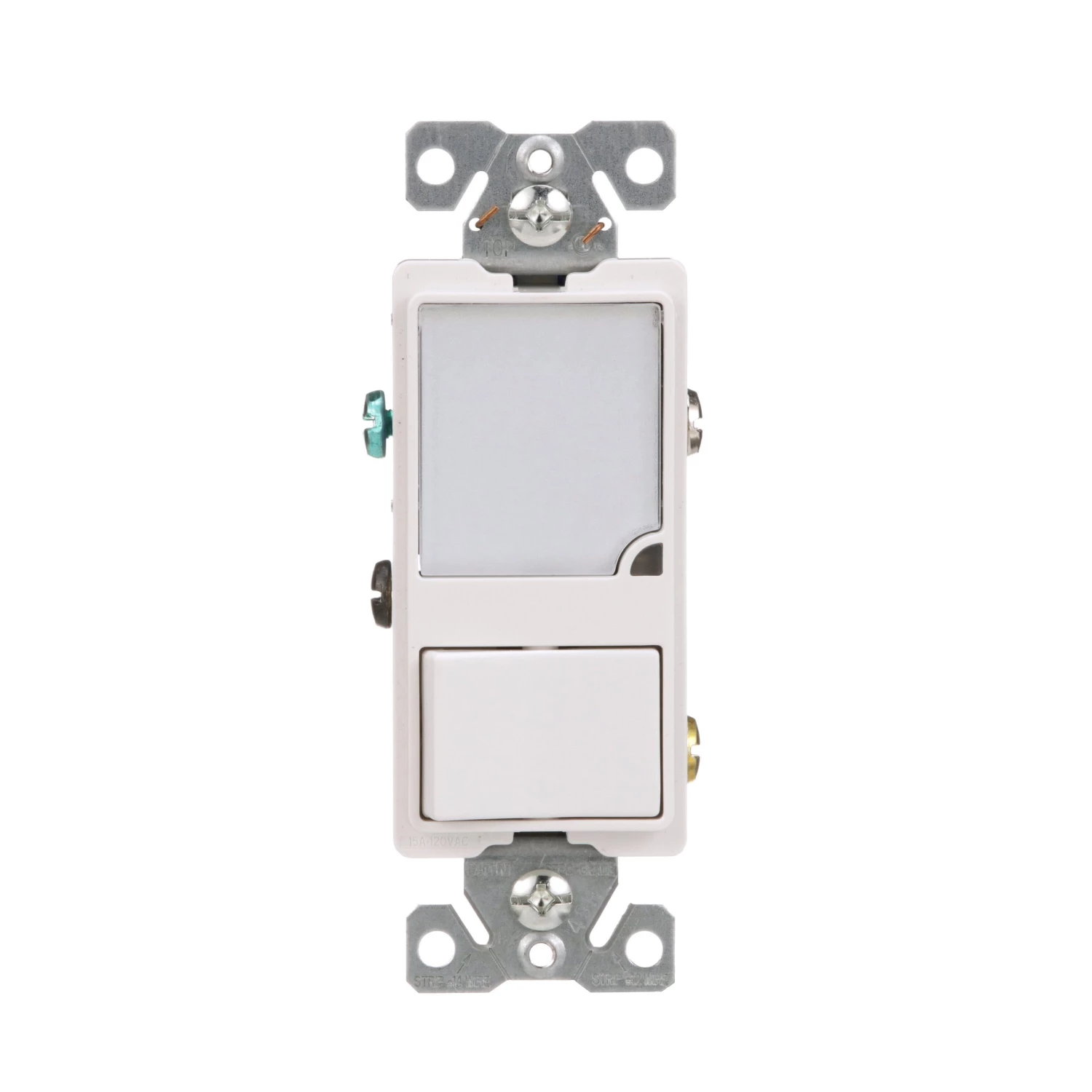 - White finish combination nightlight switch offers 15A, 120V capacity designed to provide safe way-finding in dimly lit rooms